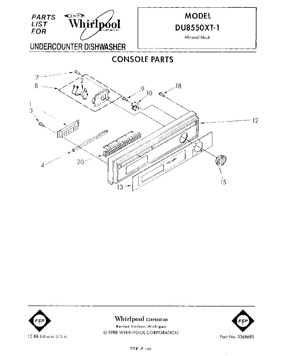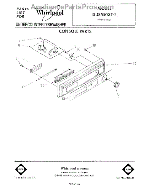 Parts for Whirlpool DU8550XT1: 01 - Console Parts