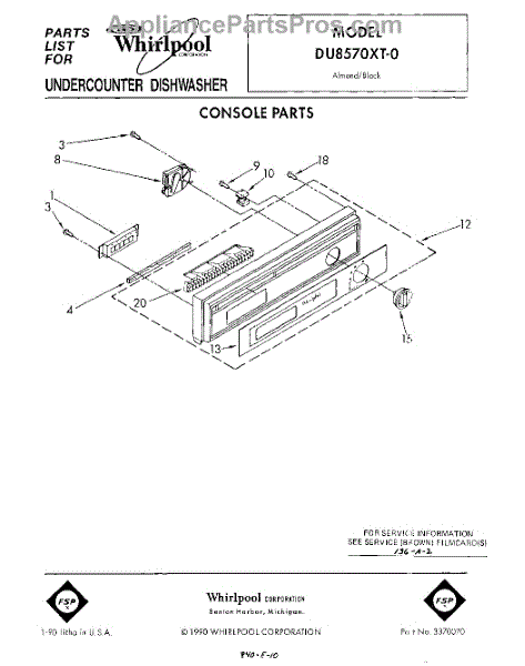 Parts for Whirlpool DU8570XT0: 01 - Console Parts