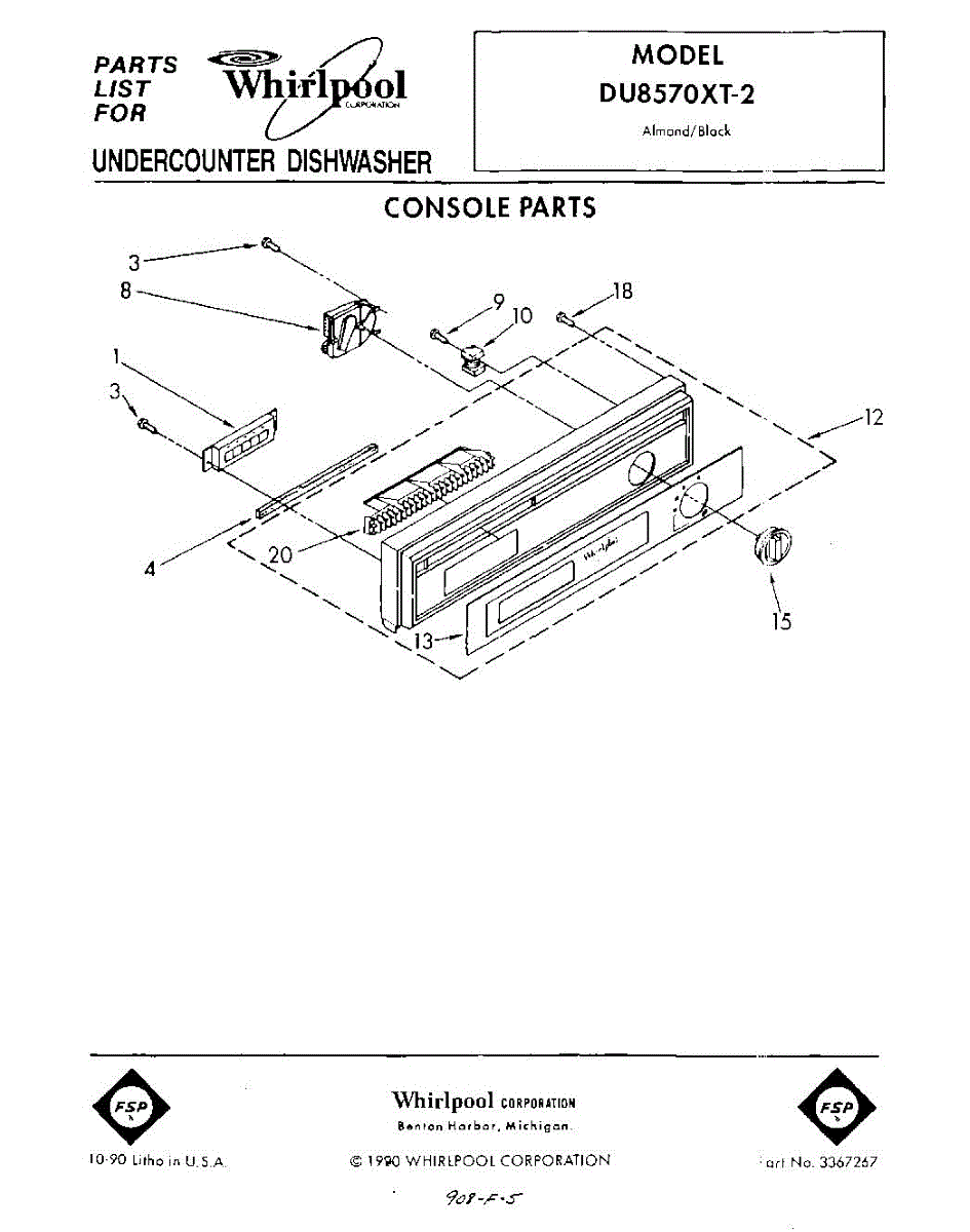 Parts for Whirlpool DU8570XT2: 01 - Console Parts