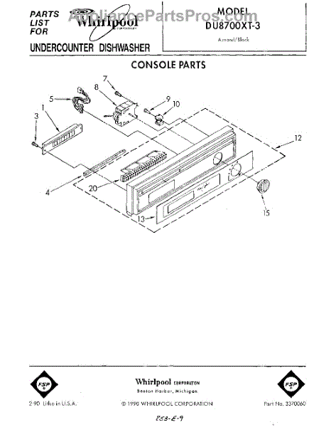 Parts for Whirlpool DU8700XT3: 01 - Console Parts