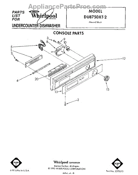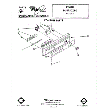 Parts for Whirlpool DU8750XT2: 01 - Console Parts
