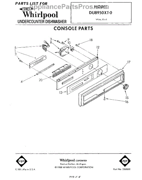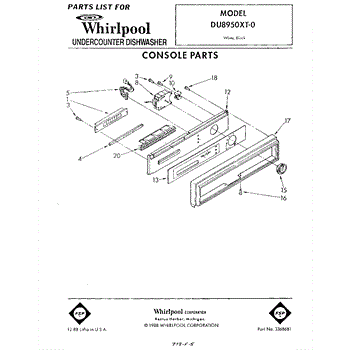 Parts for Whirlpool DU8950XT0: 01 - Console Parts