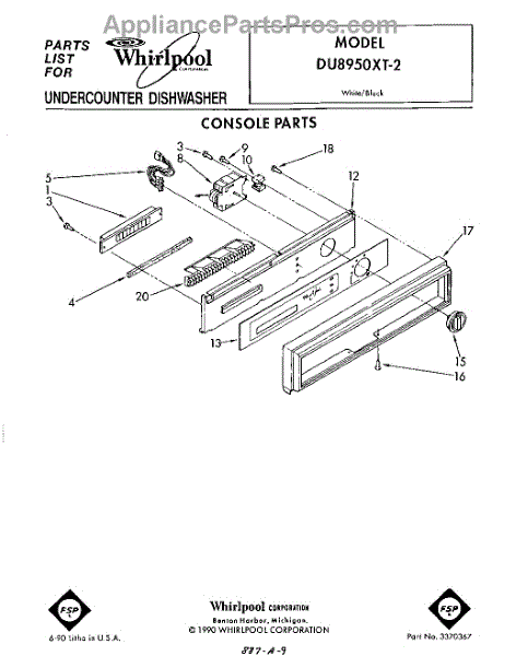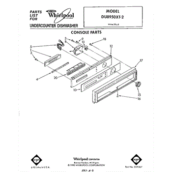 Parts for Whirlpool DU8950XT2: 01 - Console Parts