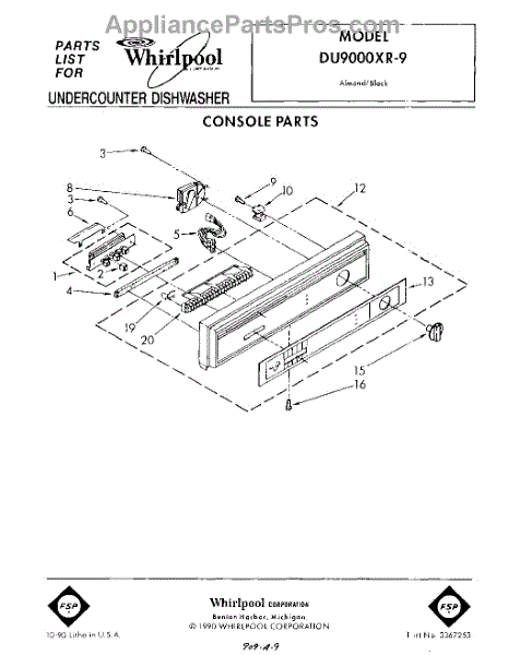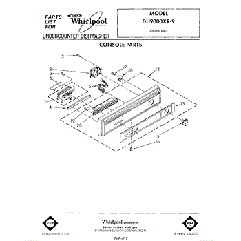 Parts for Whirlpool DU9000XR9: 01 - Console Parts