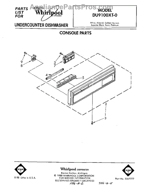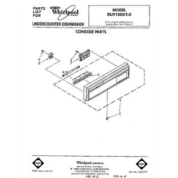 Parts for Whirlpool DU9100XT0: 01 - Console Parts