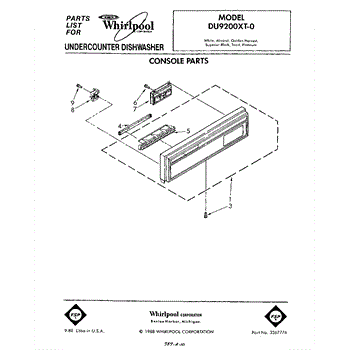 Parts for Whirlpool DU9200XT0: 01 - Console Parts