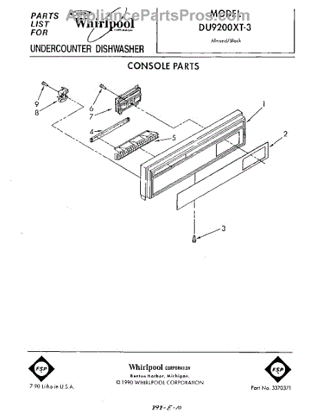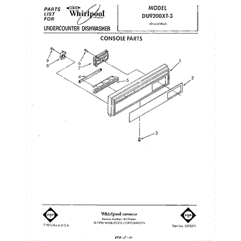 Parts for Whirlpool DU9200XT3: 01 - Console Parts