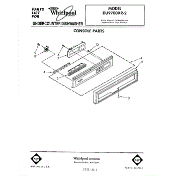Parts for Whirlpool DU9700XR2: 01 - Console Parts