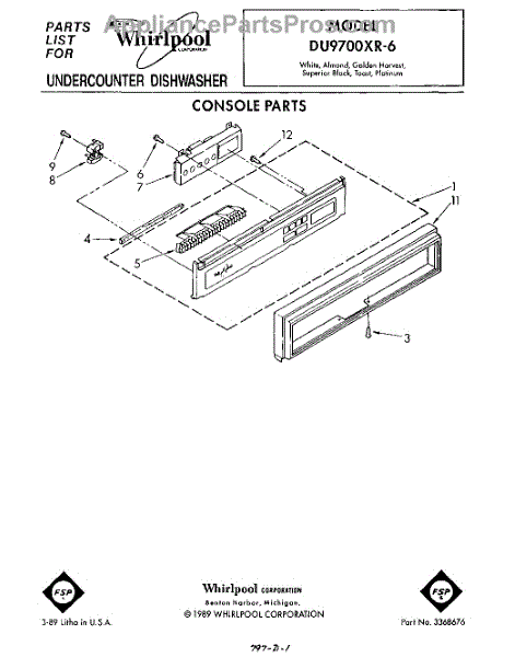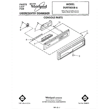 Parts for Whirlpool DU9700XR6: 01 - Console Parts