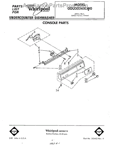Color: Black. Screw for lower toe panel. For Biscuit screw use 3400865, for white screw use WP3400836.