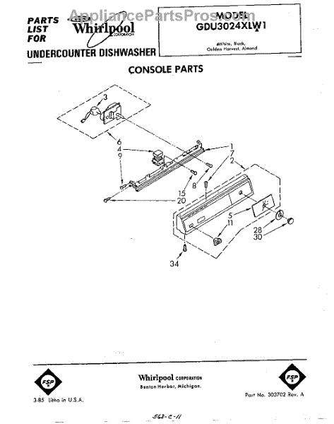 Color: Black. Screw for lower toe panel. For Biscuit screw use 3400865, for white screw use WP3400836.