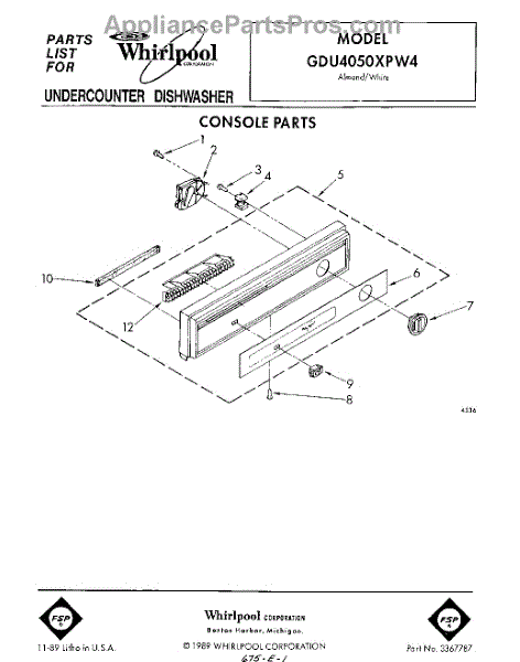 Parts for Whirlpool GDU4050XPW4: 01 - Console Parts