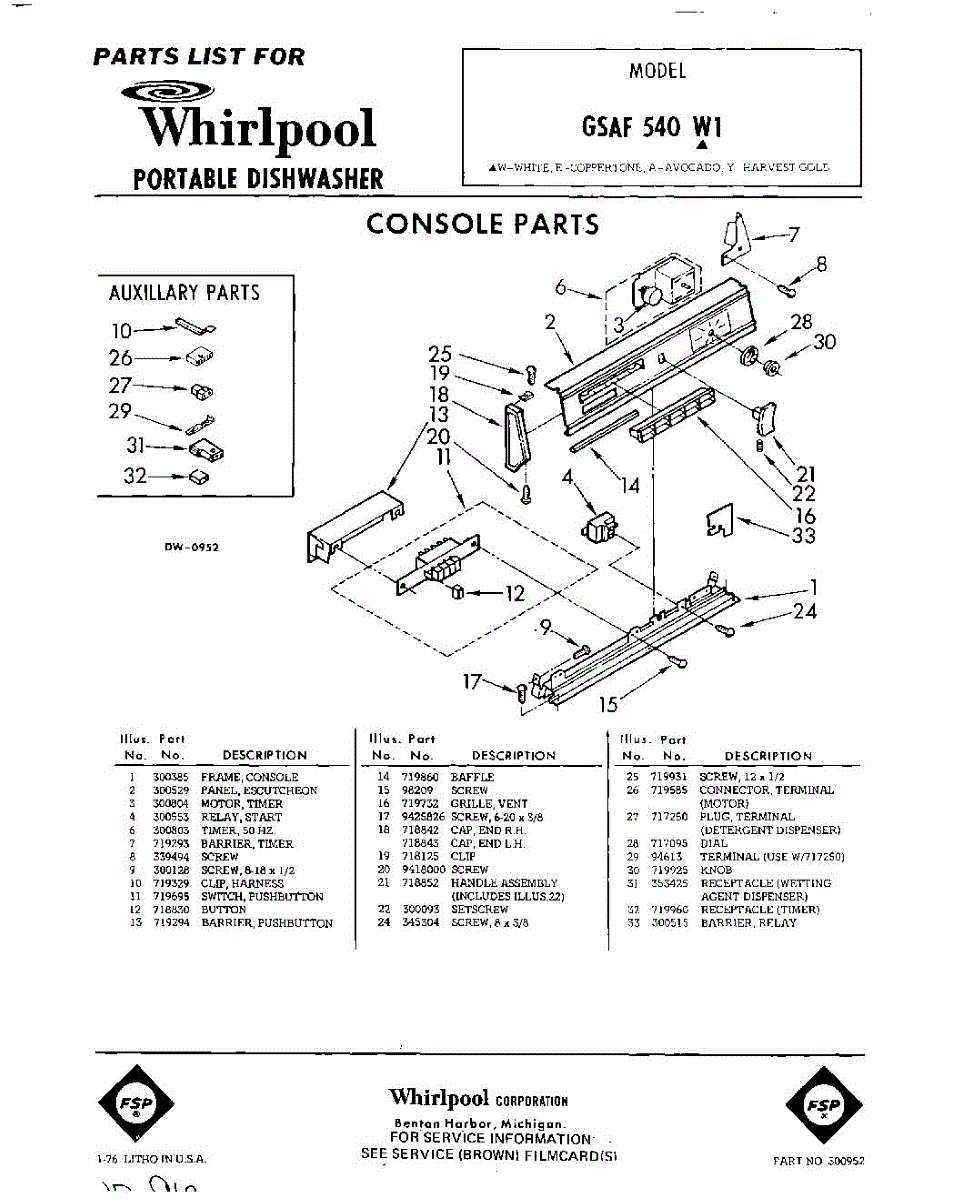 Parts for Whirlpool GSAF540W1: 01 - Console Parts