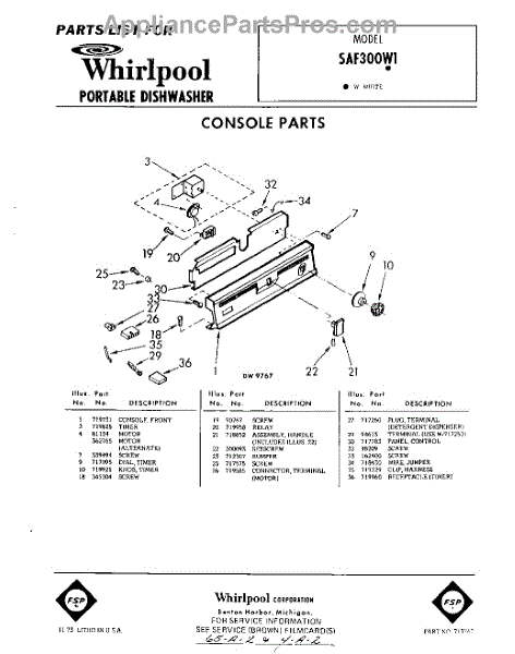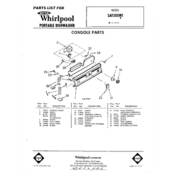 Parts for Whirlpool SAF300W1: 01 - Console Parts