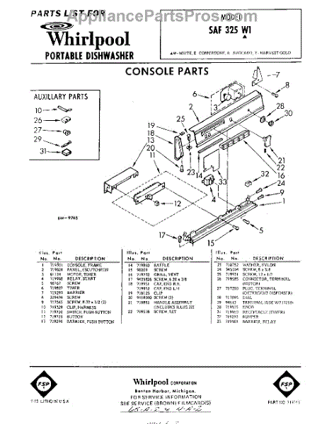 Parts for Whirlpool SAF325W1: 01 - Console Parts