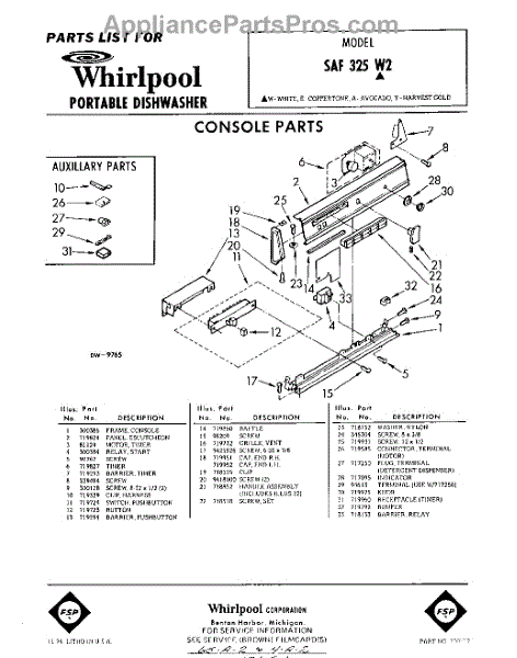 Parts for Whirlpool SAF325W2: 01 - Console Parts