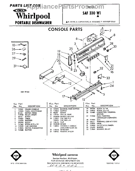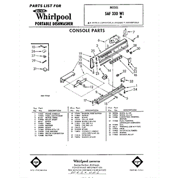 Parts for Whirlpool SAF330W1: 01 - Console Parts