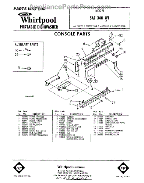 Parts for Whirlpool SAF340W1: 01 - Console Parts