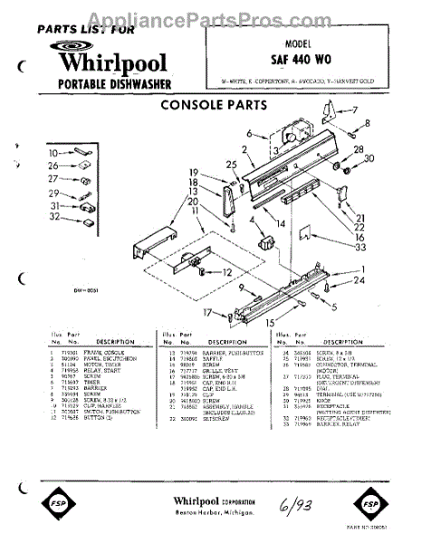 Parts for Whirlpool SAF440W0: 01 - Console Parts