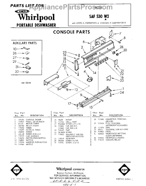 Parts for Whirlpool SAF530W2: 01 - Console Parts