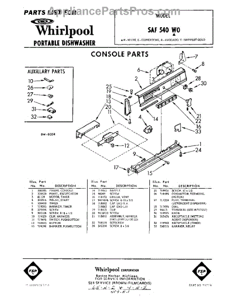 Parts for Whirlpool SAF540W0: 01 - Console Parts