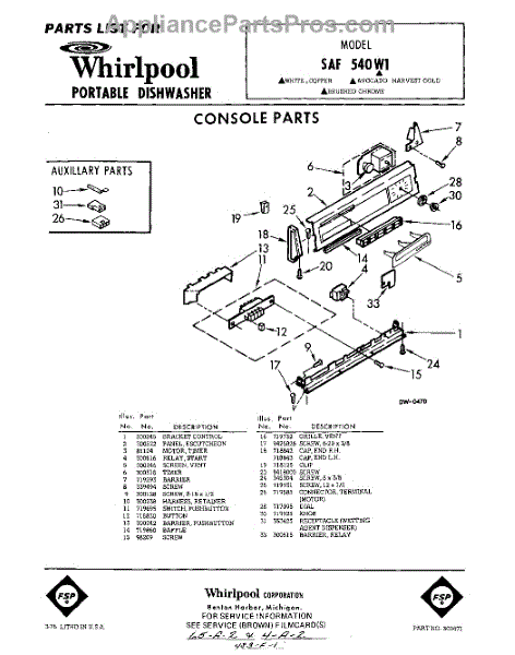 Parts for Whirlpool SAF540W1: 01 - Console Parts