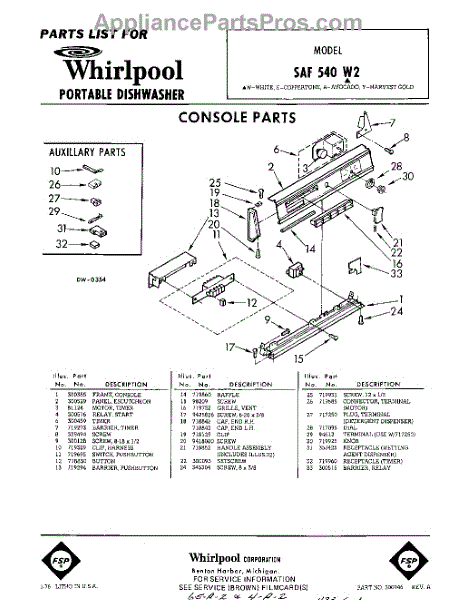 Parts for Whirlpool SAF540W2: 01 - Console Parts
