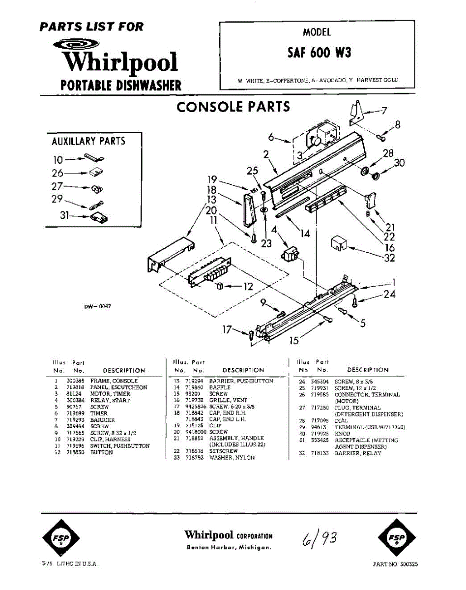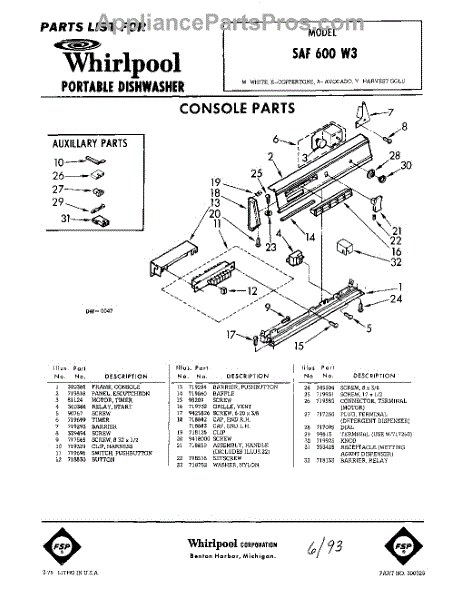 Parts for Whirlpool SAF600W3: 01 - Console Parts