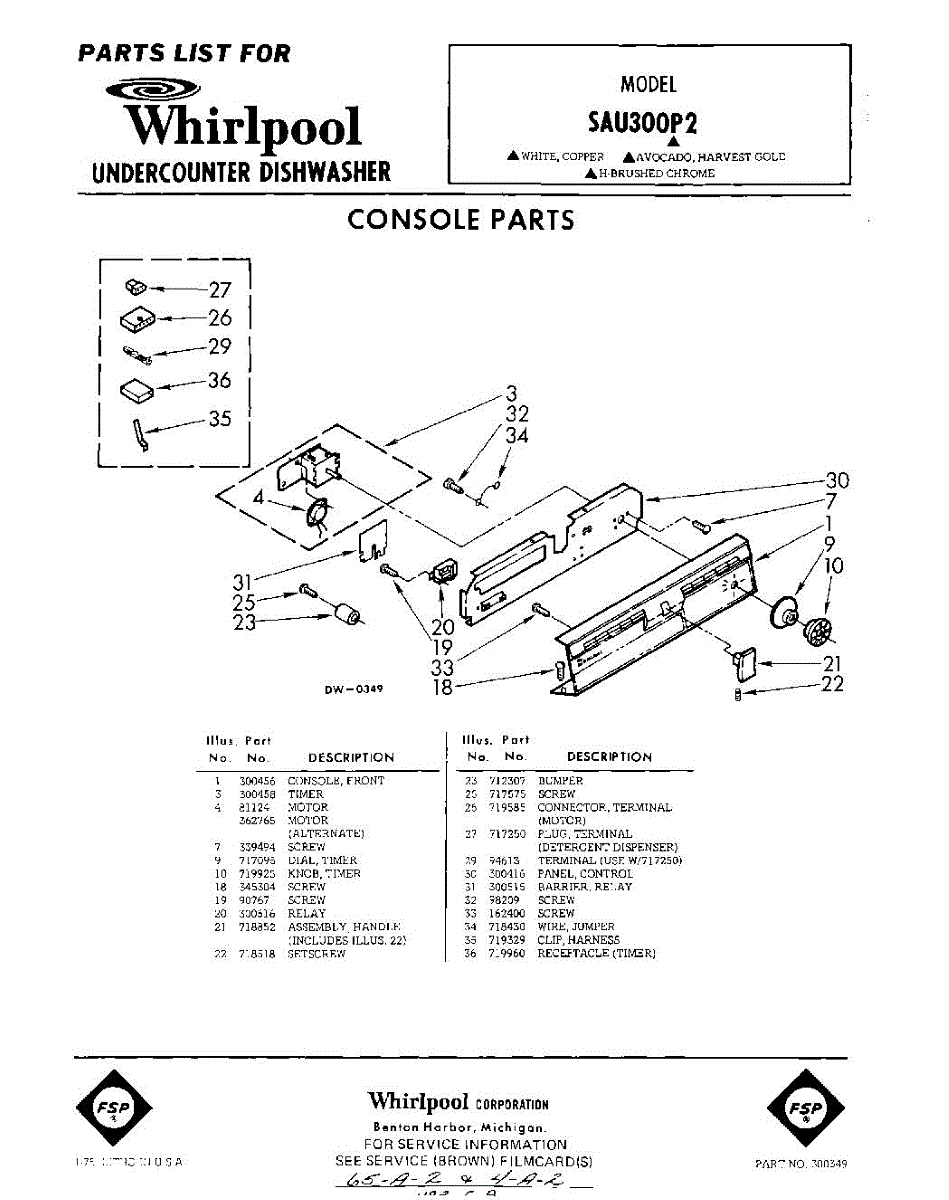 Parts for Whirlpool SAU300P2: 01 - Console Parts