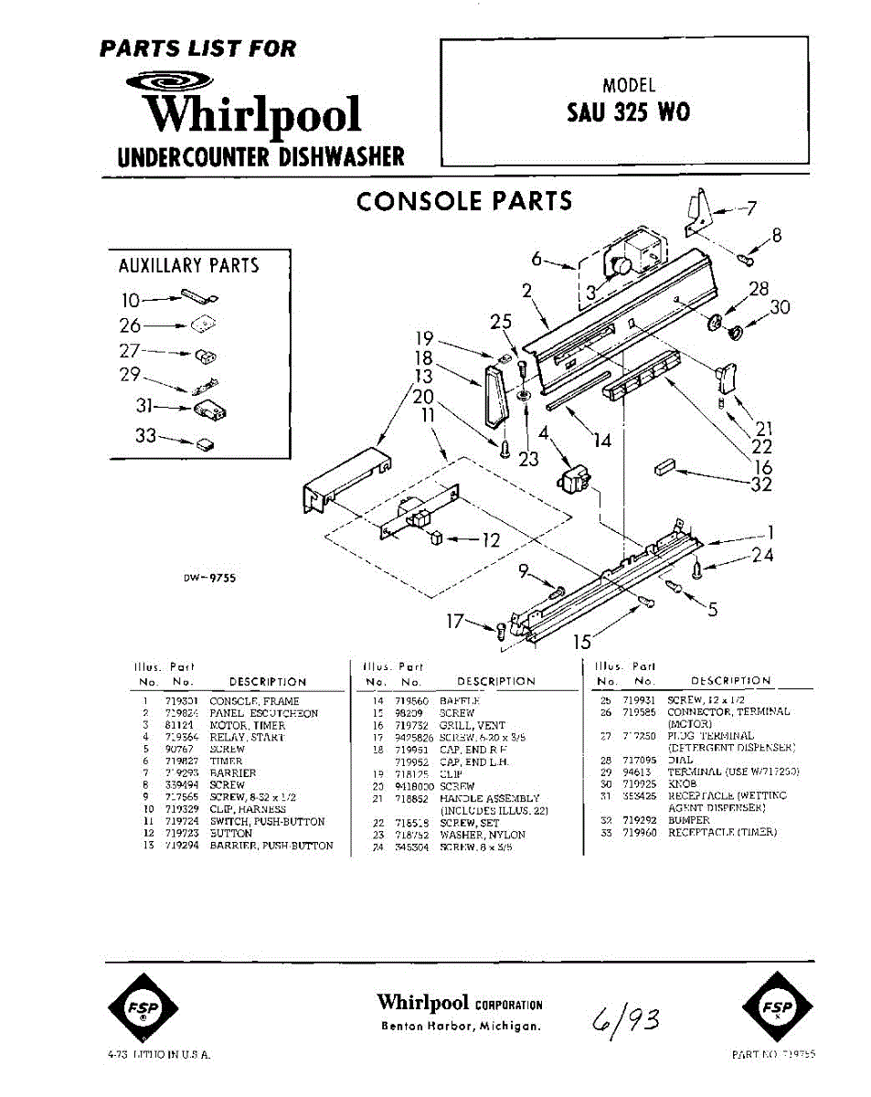 Parts for Whirlpool SAU325W0: 01 - Console Parts