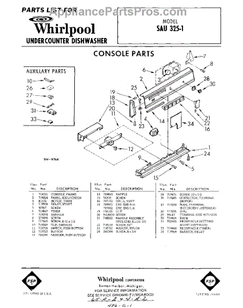 Parts for Whirlpool SAU325W1: 01 - Console Parts