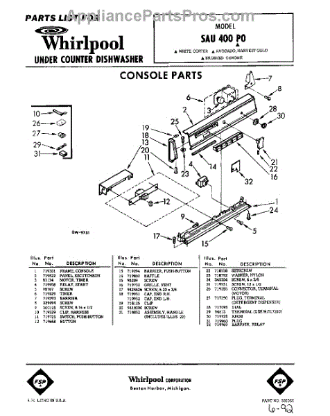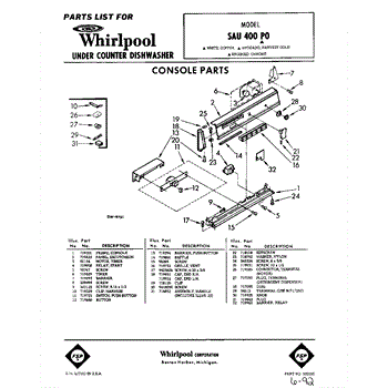Parts for Whirlpool SAU400P0: 01 - Console Parts