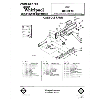 Parts for Whirlpool SAU400W0: 01 - Console Parts