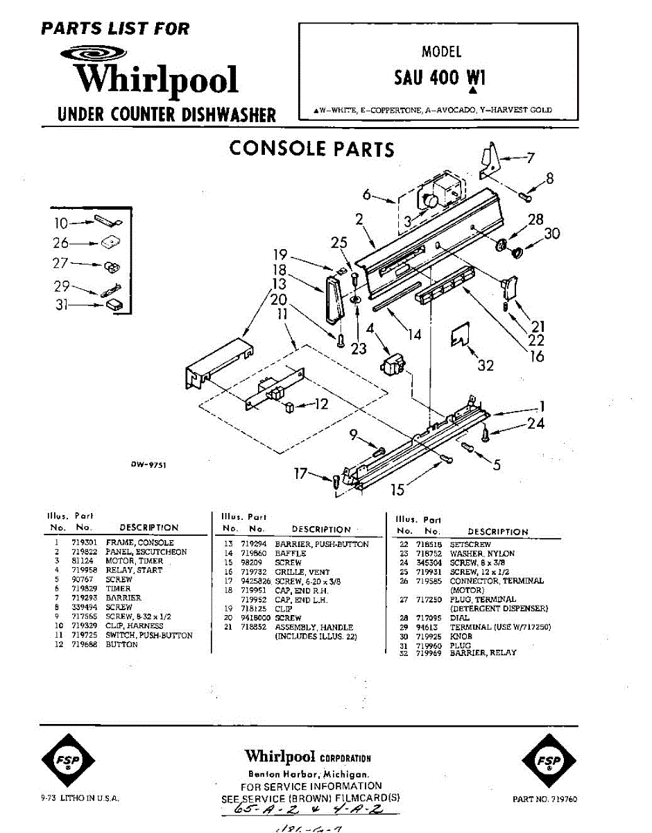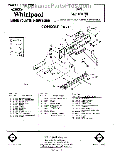 Parts for Whirlpool SAU400W1: 01 - Console Parts