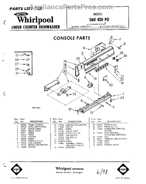 Parts for Whirlpool SAU420P0: 01 - Console Parts