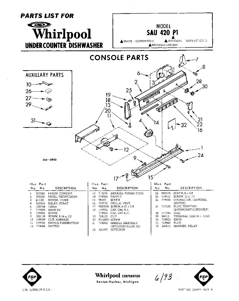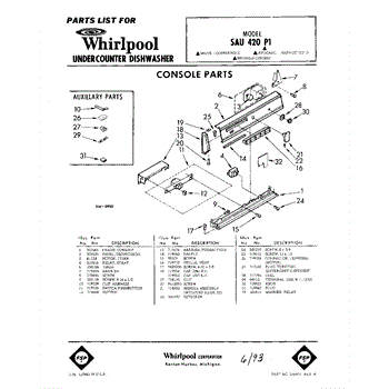 Parts for Whirlpool SAU420P1: 01 - Console Parts