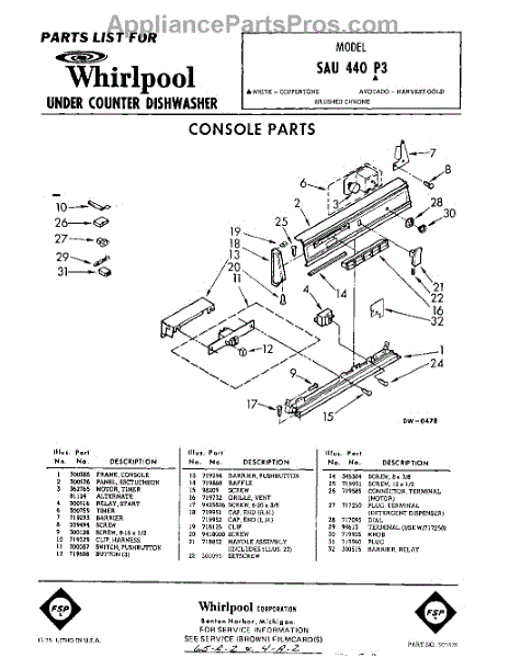 Parts for Whirlpool SAU440P3: 01 - Console Parts