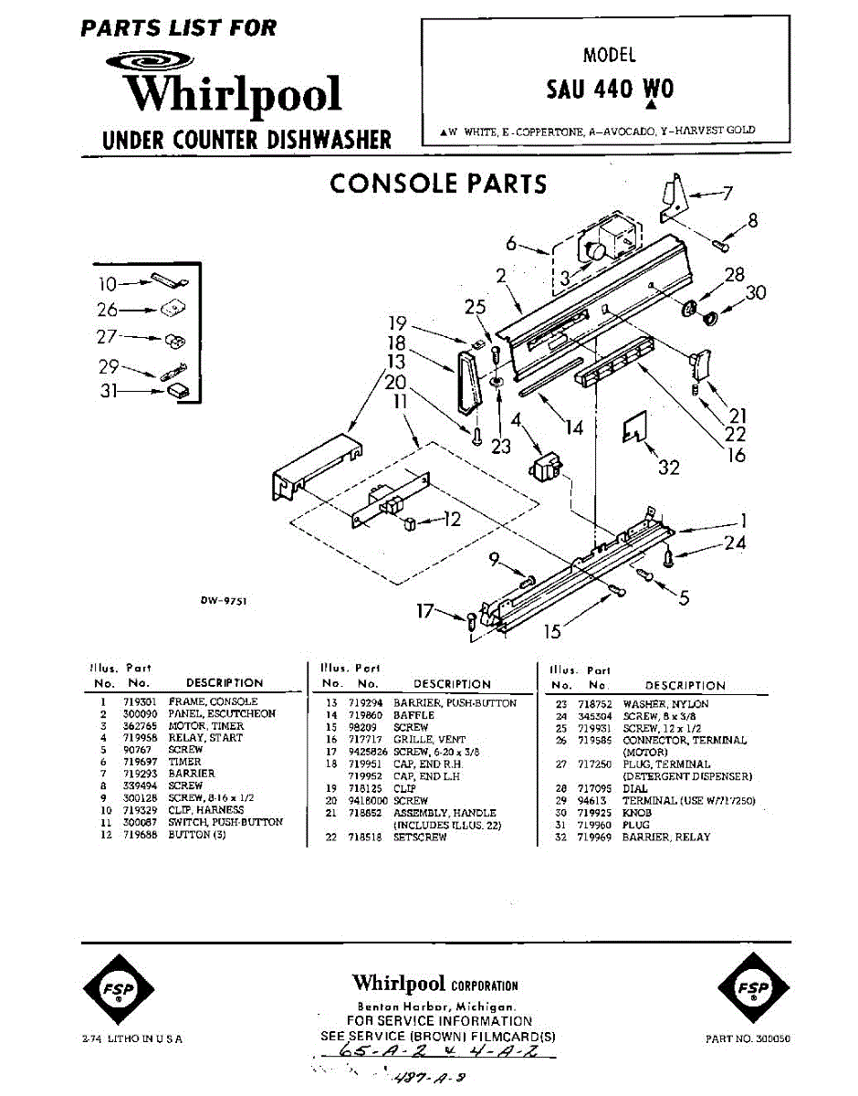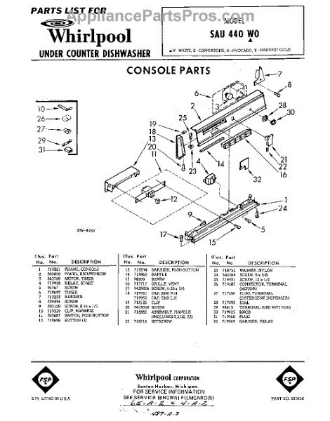 Parts for Whirlpool SAU440W0: 01 - Console Parts