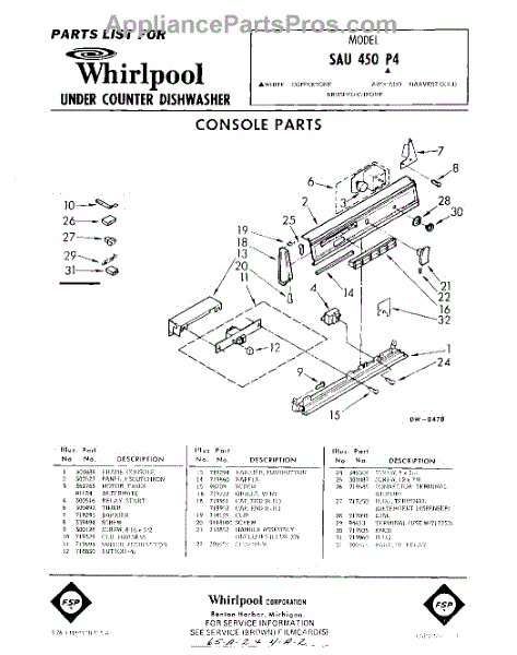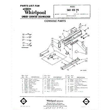 Parts for Whirlpool SAU450P4: 01 - Console Parts