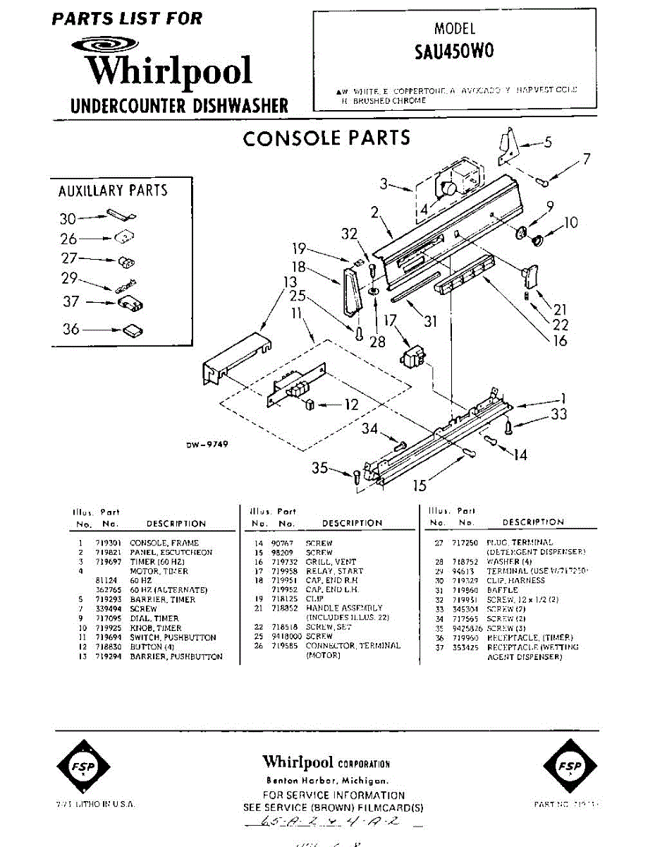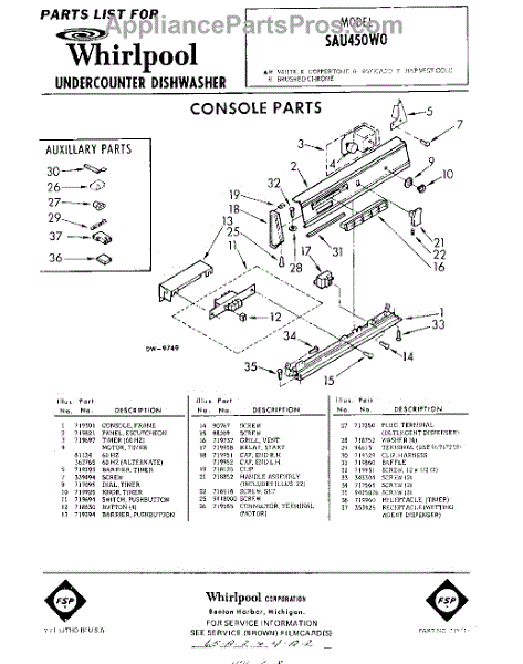 Parts for Whirlpool SAU450W0: 01 - Console Parts