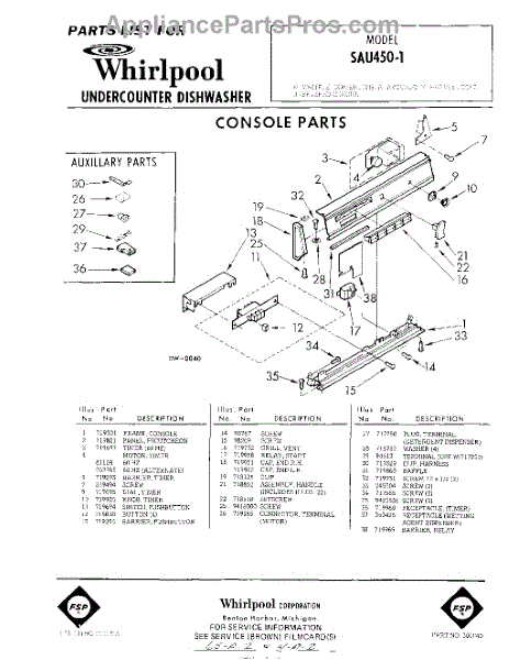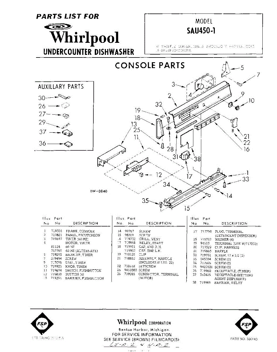 Parts for Whirlpool SAU450W1: 01 - Console Parts