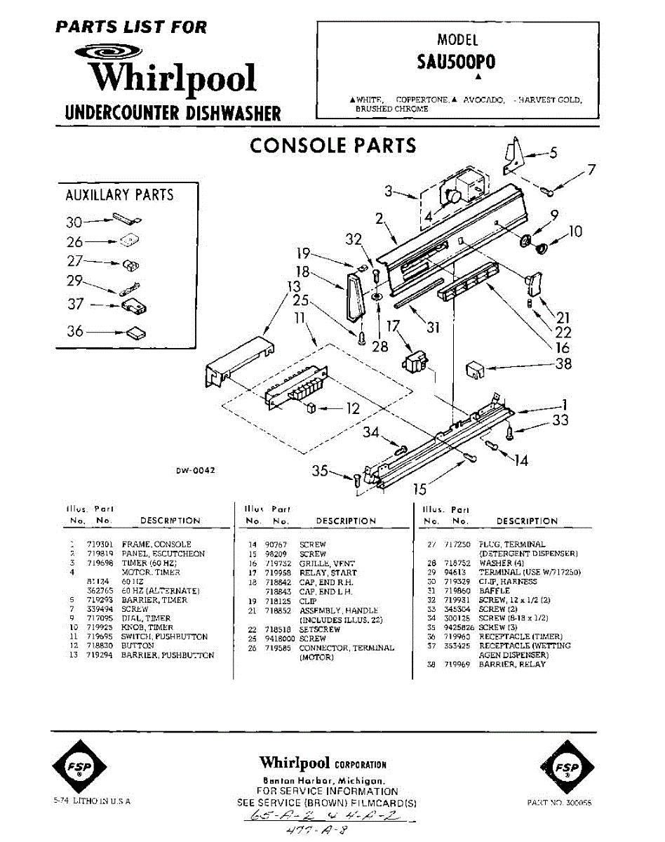 Parts for Whirlpool SAU500P0: 01 - Console Parts