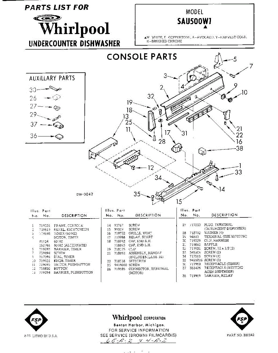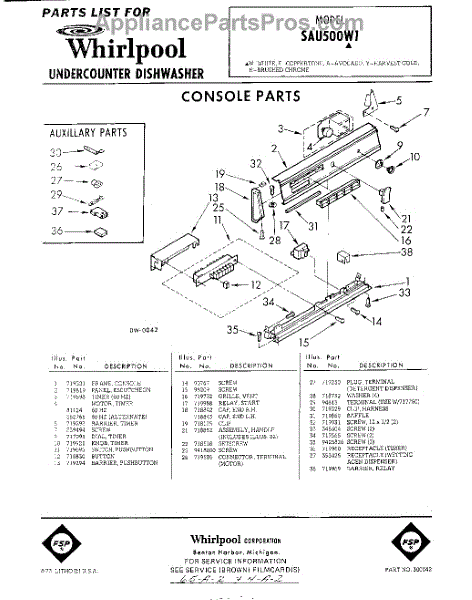 Parts for Whirlpool SAU500W1: 01 - Console Parts