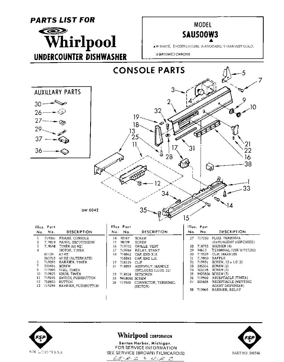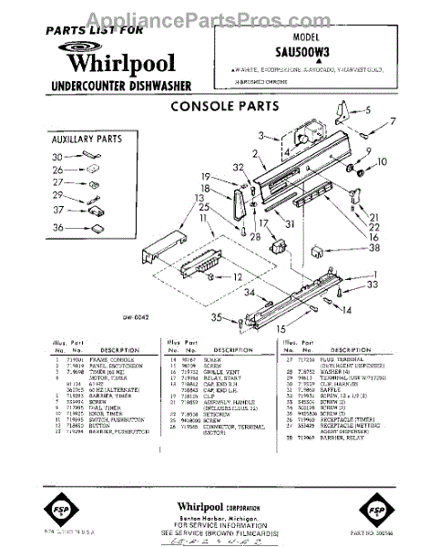 Parts for Whirlpool SAU500W3: 01 - Console Parts