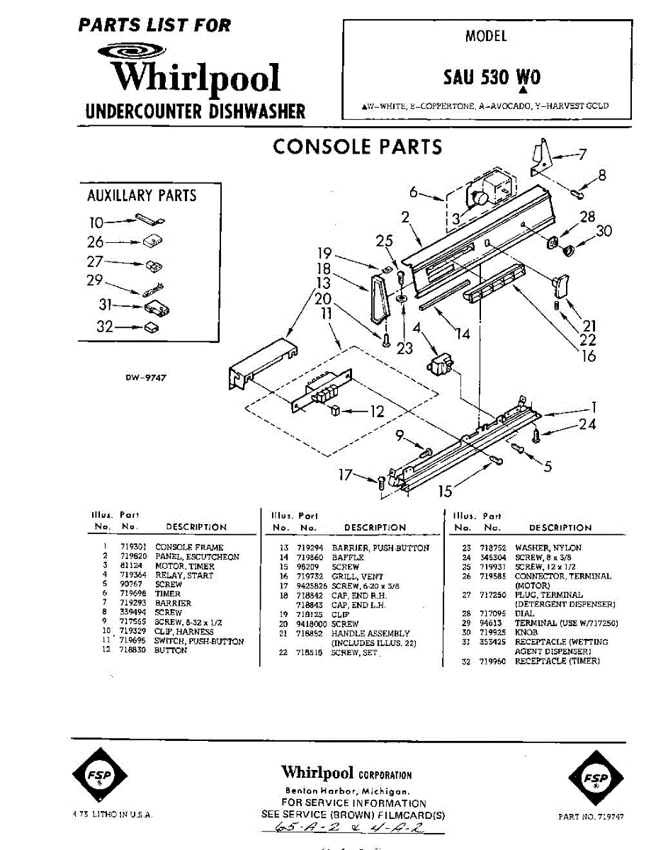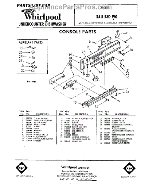 Parts for Whirlpool SAU530W0: 01 - Console Parts
