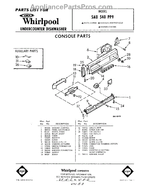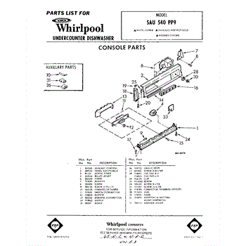 Parts for Whirlpool SAU540PP9: 01 - Console Parts