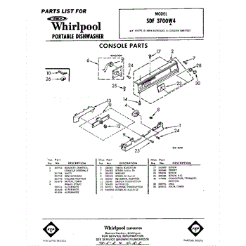 Parts for Whirlpool SDF3700W4: 01 - Console Parts