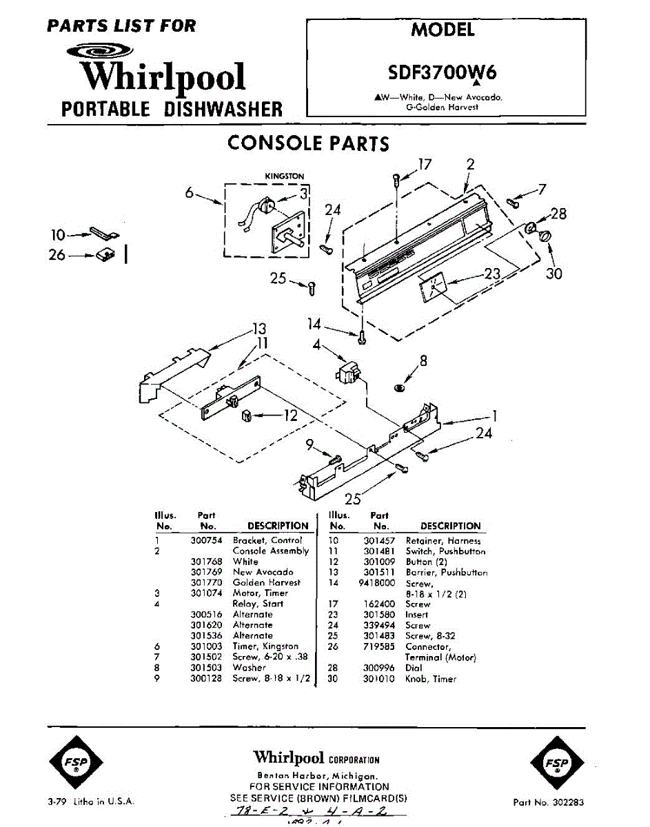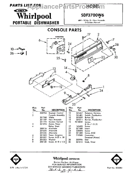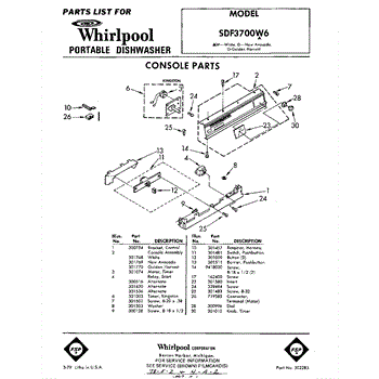 Parts for Whirlpool SDF3700W6: 01 - Console Parts