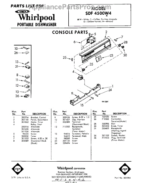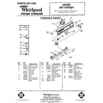 Parts for Whirlpool SDF4500W4: 01 - Console Parts