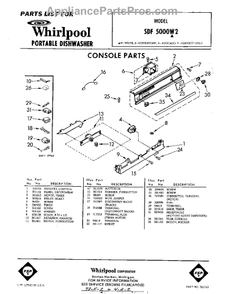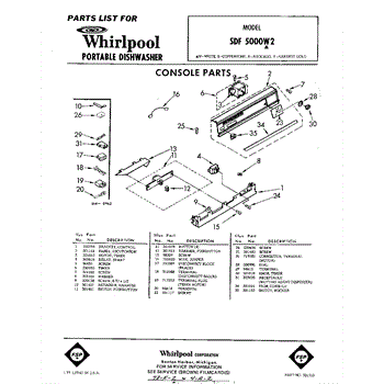 Parts for Whirlpool SDF5000W2: 01 - Console Parts